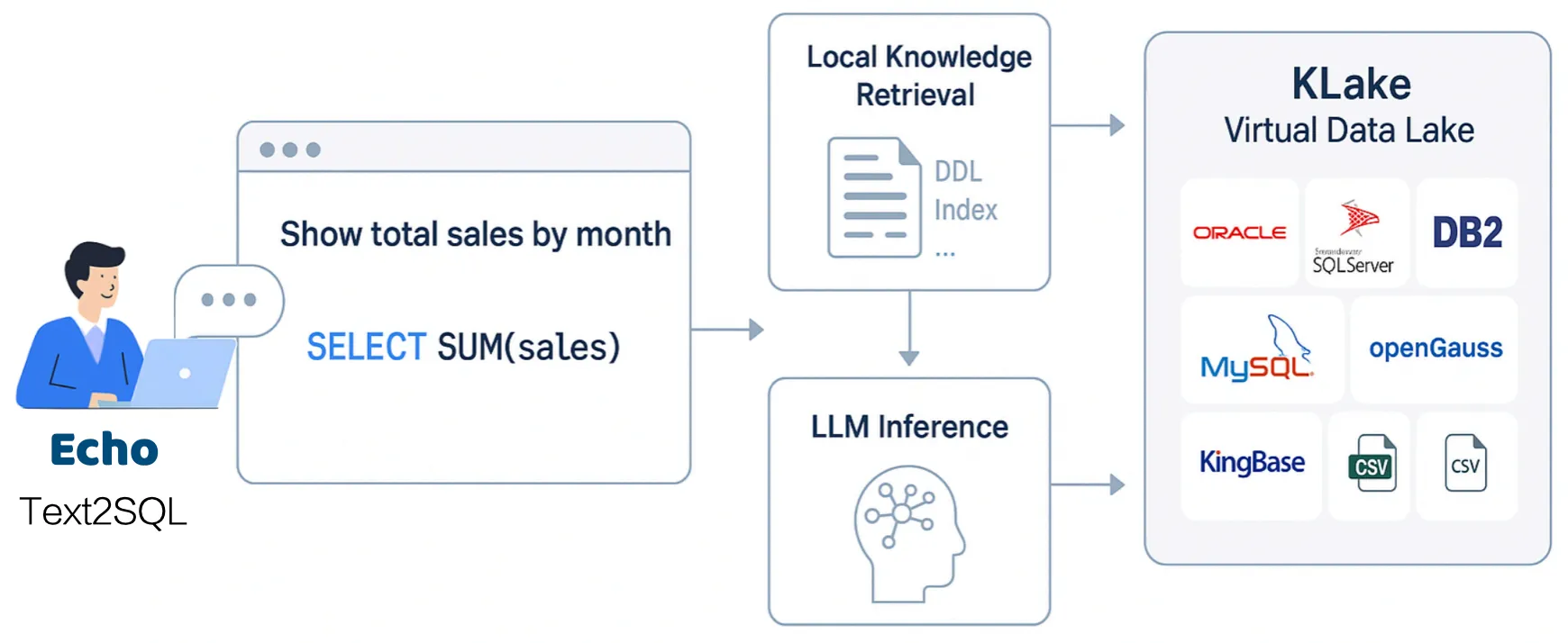 В эпоху, управляемую данными, быстрые, точные и гибкие возможности запросов данных являются центральными для получения конкурентного преимущества. Echo переопределяет взаимодействие с данными благодаря своим техническим преимуществам, гибкому развертыванию и ориентированному на пользователя дизайну. Будь то наделение бизнес-экспертов возможностями извлечения инсайтов или снятие бремени SQL с ИТ-команд, Echo предоставляет оптимальное решение.